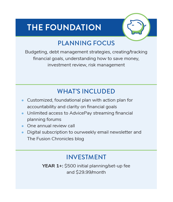 Fusion Financial Group is focused on financial planning and management for women, thriving families, small businesses and subscription-based investors.